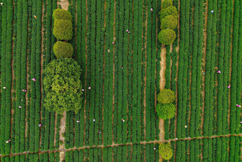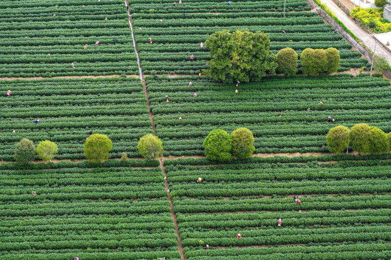 村民抓紧晴好天气采摘明前茶